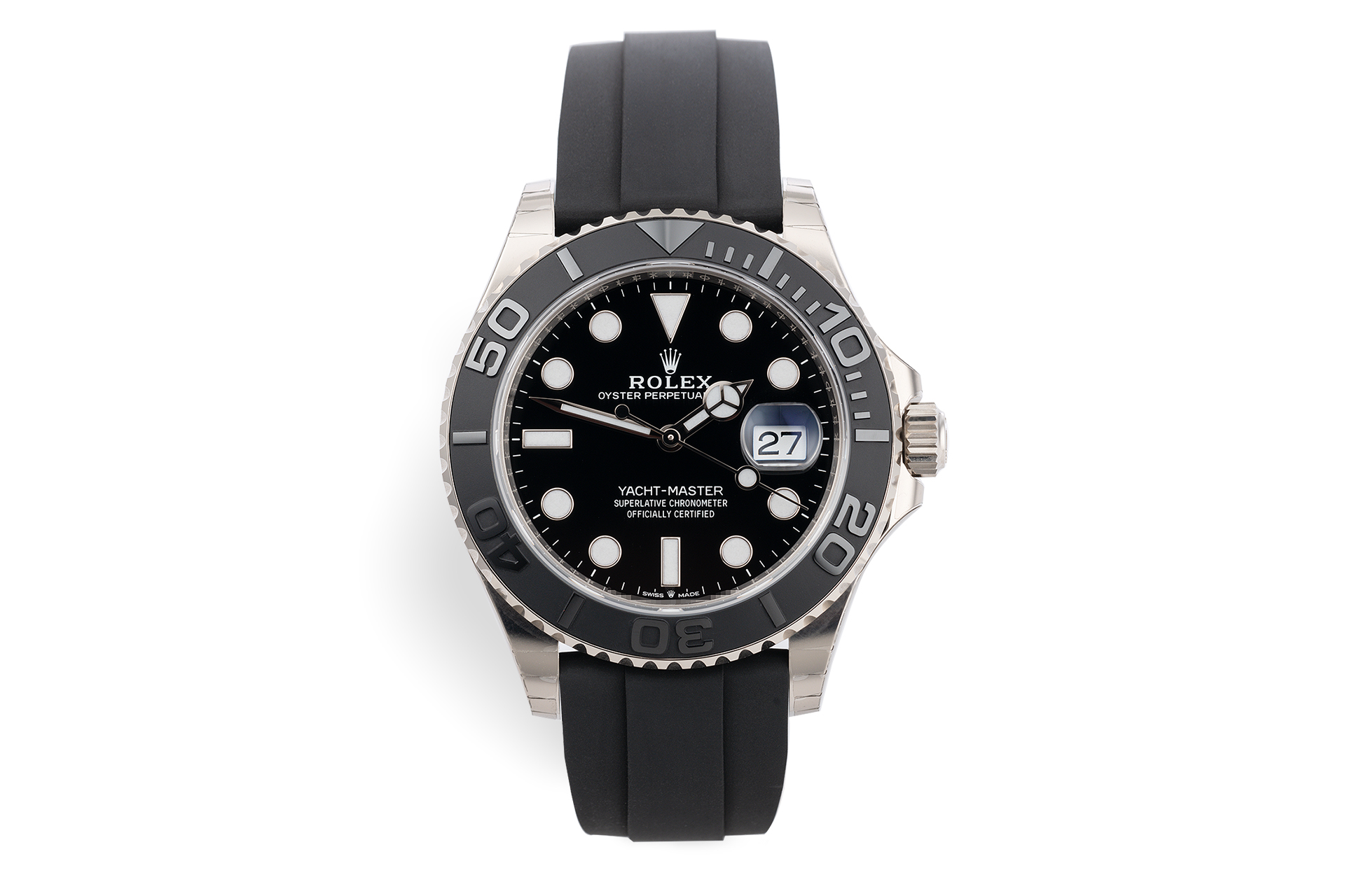 Rolex Yacht Master 42 White Gold Black Dial Matte Black Oysterflex Strap 226659 Brand New