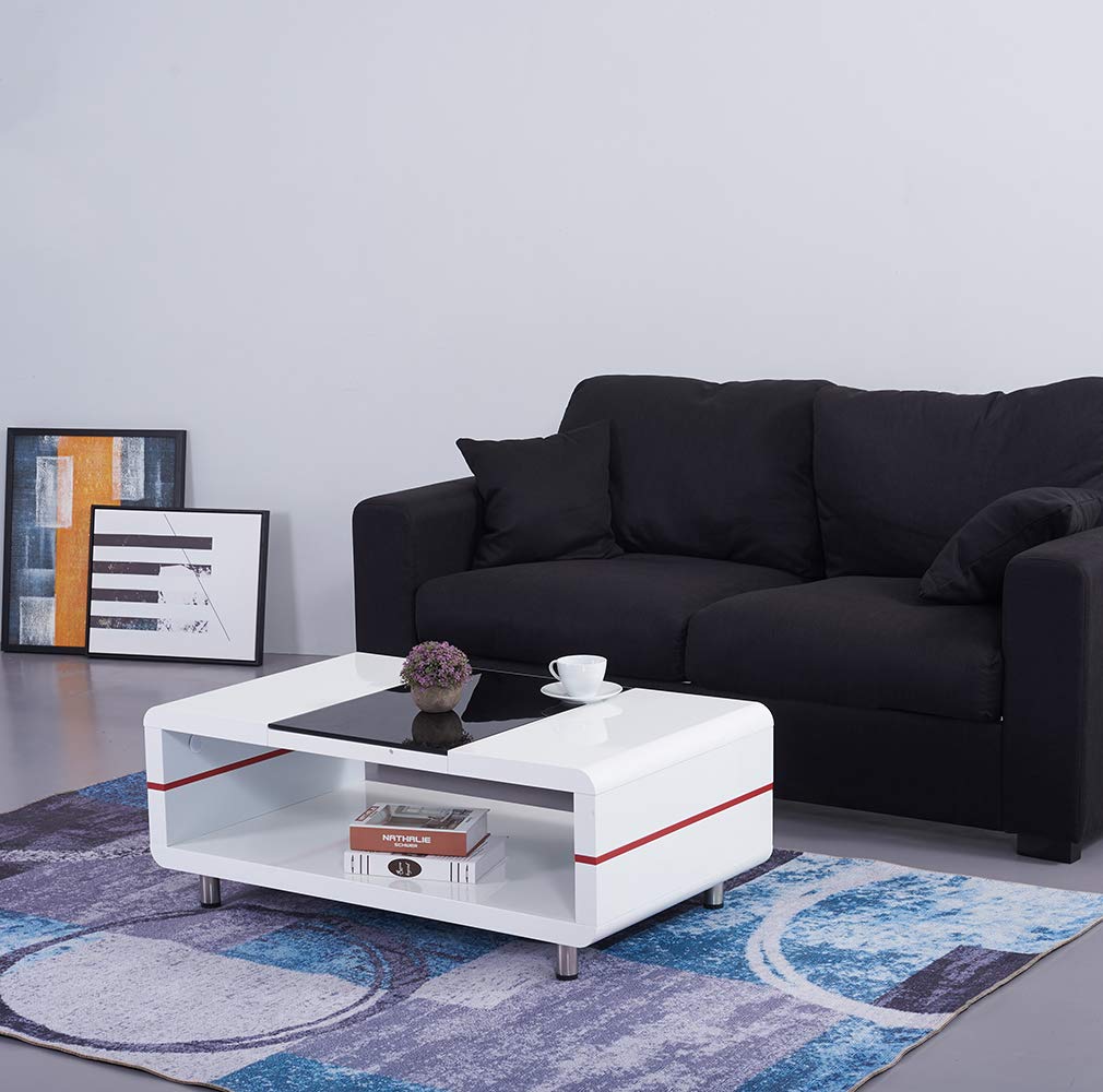 Tavolino Salotto In Legno Bianco Lucido Con Piano Elevabile E Spazio Contenitore Tavolini Soggiorno Design Moderni Da Caffe Misura 100x50x45 Cm