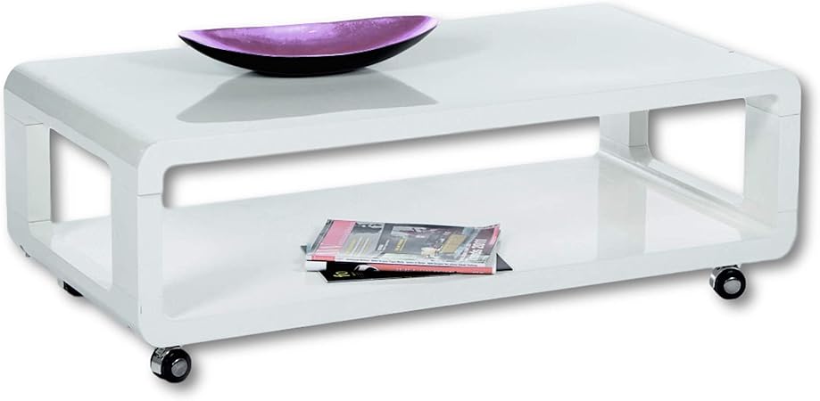 Stella Trading Fever Tavolino Moderno Bianco Lucido Su Ruote Mobile Con Due Livelli Per Il Vostro Salotto Materiale A Base Di Legno 105 X 41 X 58 Cm Amazon It Casa E Cucina