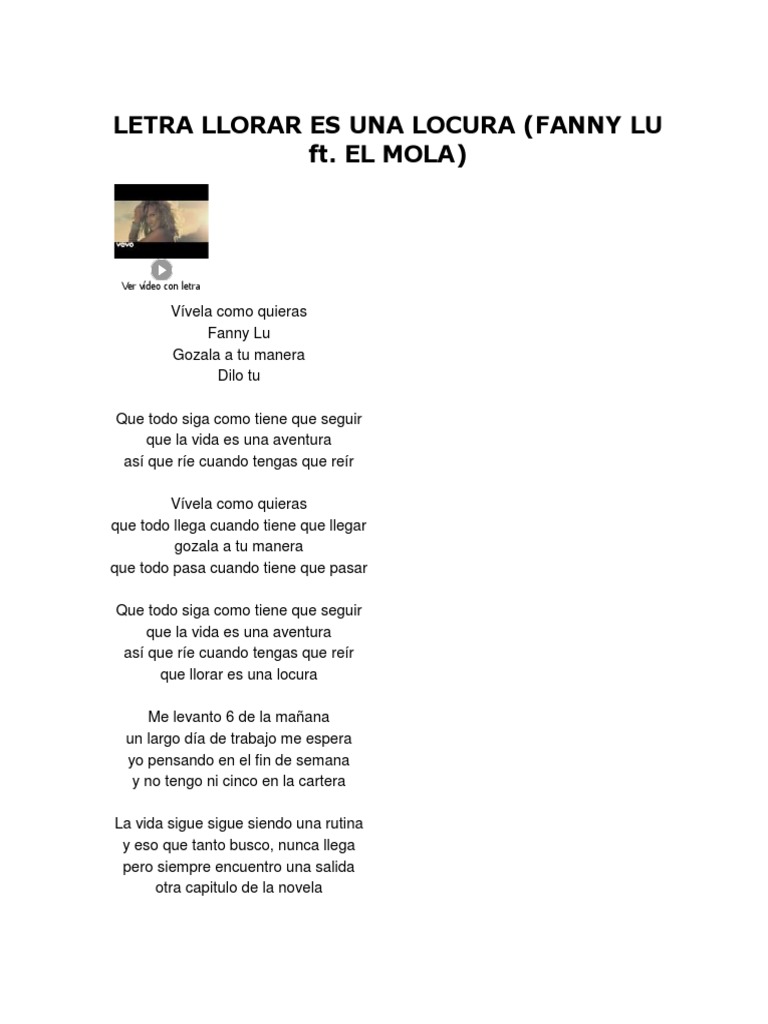 Letra Llorar Es Una Locura Fanny Lu Ft El Mola Ver Video Con Letra