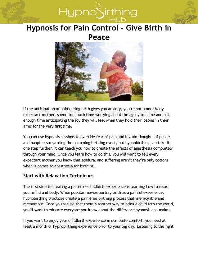 Hypnosis For Pain Control Give Birth In Peace