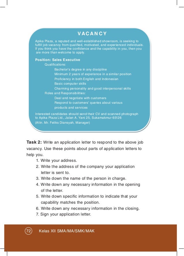 Based On This Job Vacancy Write A Simple Application Letters Brainly Co Id