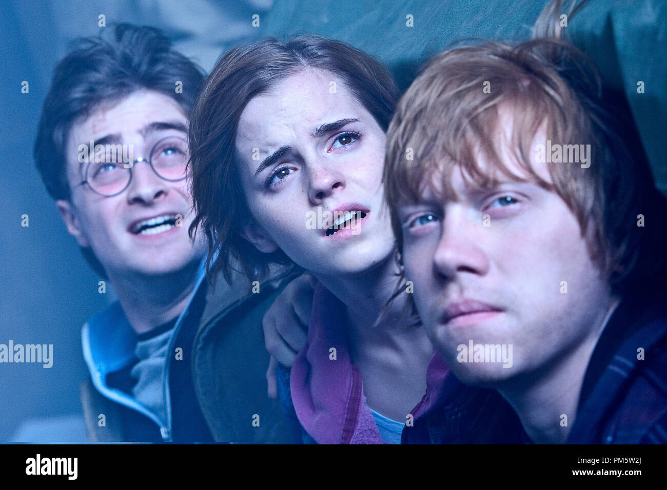 L-r) Daniel Radcliffe come Harry Potter, Emma Watson come Hermione Granger e Rupert Grint come Ron